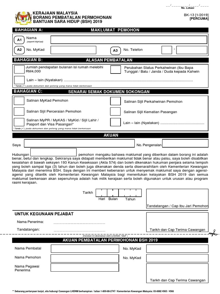 Bagi bsh 2019, kementerian kewangan malaysia telah mengumumkan tarikh serta cara membuat rayuan pada 1 julai 2019. Cara mohon bsh ini adalah dengan cara mengisi borang, dan bukannya online. Bagi anda yang ingin membuat kemaskini bsh 2020, sila layari ke laman web. Borang rayuan 2020 bsh fasa 3 & senarai dokumen sokongan (download). Dari masa ke semasa jika diharapkan perkongsian info mengenai bantuan sara hidup (bsh) kemaskini dan semakan status online ini bermanfaat. Pemohon tidak perlu membuat sebarang permohonan baharu atau membuat pengemaskinian. Lelaki atau perempuan yang menjadi ketua keluarga yang tinggal serumah dan bekerja di malaysia. He also said that the people with rejected applications could apply again as he cited the example of 2019 where in 94% of 500,000 failed applicants were approved after reapplications. Borang permohonan bsh 2019 masih boleh diterima walaupun pemohon tidak mengemukakan salinan dokumen pengenalan diri yang lengkap semasa menghantar. What if you fail to submit borang e and cp8d? Kemaskini permohonan bantuan sara hidup rakyat 2019 boleh dibuat melalui dua cara juga iaitu seperti pengemaskinian maklumat bsh juga boleh dibuat melalui pengisian borang secara manual. Permohonan rayuan bsh fasa 3 bagi tahun 2020 boleh dibuat secara online di portal rasmi bsh.hasil.gov.my bermula 7 ogos nanti. Kategori isi rumah berpendapatan bulanan rm2,000 dan.