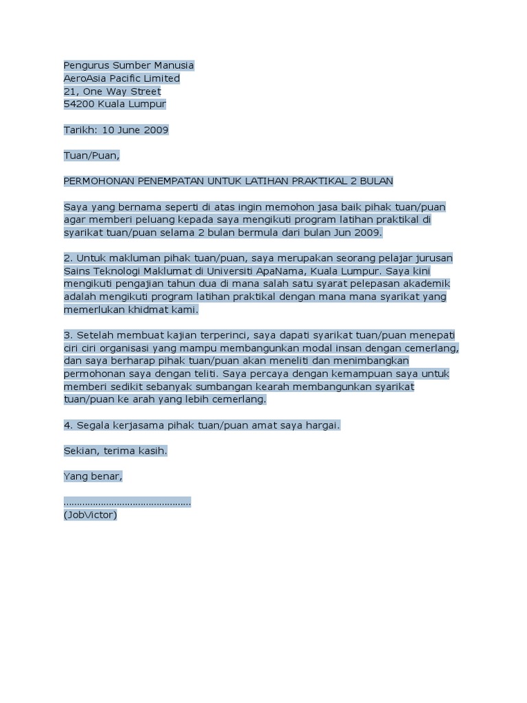 Contoh Surat Permohonan Praktikal - Jika anda sedang mencari informasi terkait contoh surat permohonan.
