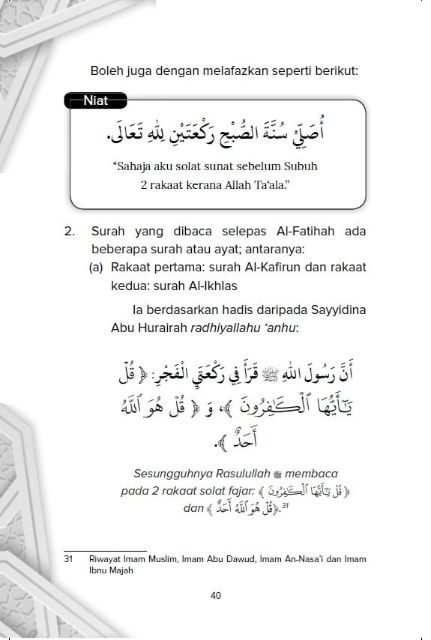 Pejabat Mufti Wilayah Persekutuan Al Kafi 1726 Bilakah Waktu Menunaikan Solat Sunat Subuh from muftiwp.gov.my Pagescommunity organizationwanita isma bangivideossolat sunat sebelum subuh. Apakah kelebihan solat sunat rawatib? Solat ini adalah sunat muakkad, iaitu yang amat dituntut dan digalakkan. Lafaz niat setelah masuk waktu subuh iaitu sesudah azan lakukan solat sunat sebelum subuh dua rakaat. Walau hanya solat sunat tetapi ganjaran yang allah berikan sangat tinggi nilainya. Sesiapa solat subuh berjemaah, kemudian duduk berzikir kepada allah sehingga naik matahari dan mengerjakan solat dua rakaat (solat sunat isyraq). Shalat sunnah terbaik dua raka'at fajar (shalat sunnah. Rasulullah saw tidak meninggalkan solat sunat 10 rakaat iaitu dua rakaat sebelum zuhur, 2 rakaat sesudahnya zuhur,dua rakaat selepas maghrib, dua rakaat selepas isyak dan dua rakaat sebelum solat subuh. (hadis riwayat bukhari dan muslim).