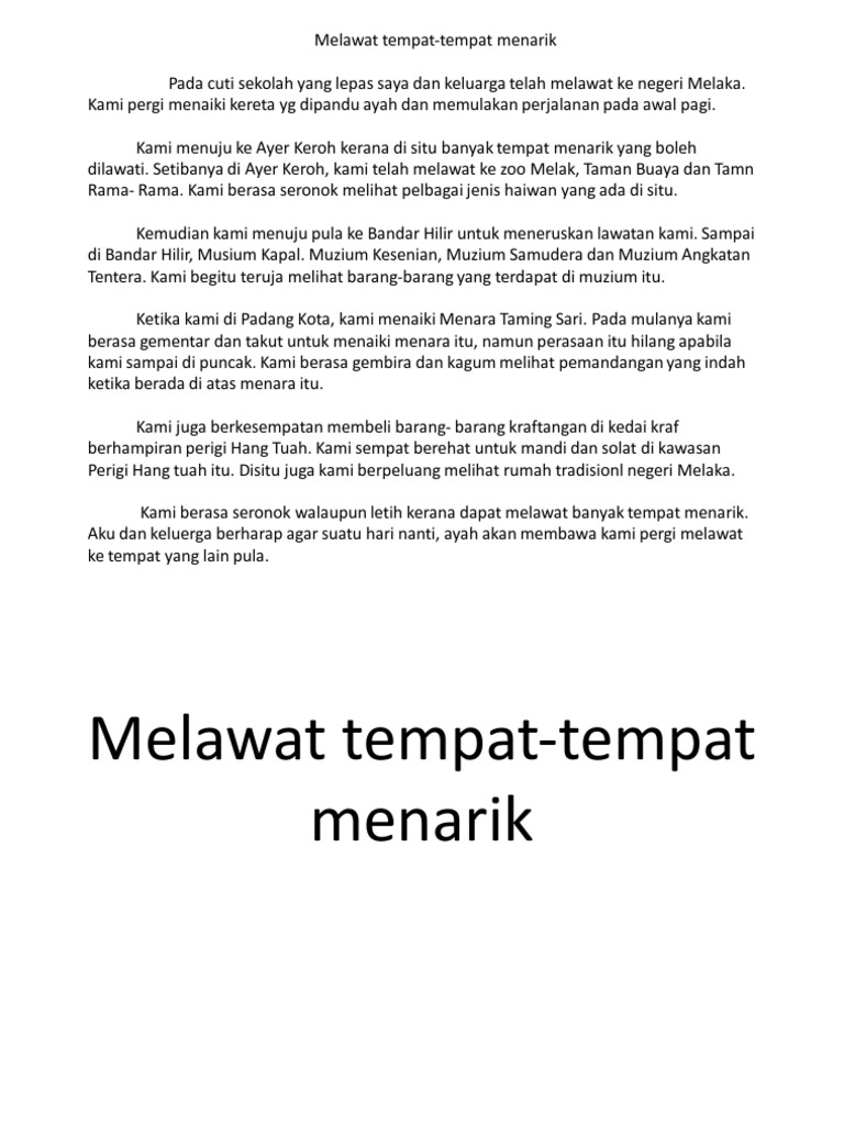 Pusat pelancongan ayer keroh, lebuh ayer keroh, 75450 melaka. Kawasannya meliputi dari tol ayer keroh sehingga ke persimpangan tun ghaffar baba. Ayer keroh bersempadan dengan bukit beruang dan bukit katil. Taman burung melaka adalah taman aviari terbuka pertama di melaka dan merupakan taman burung terbesar di asia. Kami pergi menaiki kereta yg dipandu ayah dan memulakan perjalanan pada awal pagi. Lebuh ayer keroh, 75450 ayer keroh. Buat anda yang ingin membawa keluarga bercuti ke melaka, jom lihat senarai tempat menarik yang terdapat di melaka. M elaka merupakan bandar bersejarah yang mempunyai banyak tempat menarik untuk dikungjungi. Lokasi yang diberikan amat sesuai untuk dijadikan tempat bercuti kerana lokasinya yang strategik. Di atas merupakan beberapa senarai tempat pelancongan yang menarik boleh anda kunjungi di melaka. Datang melaka tapi tak tahu nak pergi mana? Negeri ini bahkan mempunyai budaya yang unik dan tidak dijumpai di negeri lain. Anda boleh kunjung sesuai seisi keluarga.